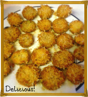 Once your zucchini is sliced into rounds, you're going to want to coat the slices in flour, then dip each round into the egg/water mixture. After you have each piece coated, you're going to add to the Panko and spices bowl and make sure it covered in all the goodies! (I added a little more Parmesan cheese at this point because I didn't think it looked like enough). Once all your pieces are covered we put ours down in the frying oil for exactly 3 minutes. They turned out beautifully!